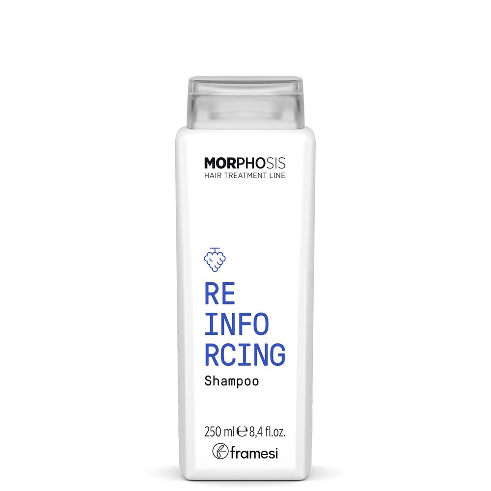 Средство для восстановления и укрепления волос Фрамези MORPHOSIS REINFORCING от известного итальянского бренда обладает лечебным и успокаивающим эффектом. Он напитывает локоны полезными компонентами, деликатно очищает кожу головы, улучшает ее состояние и барьерные свойства.